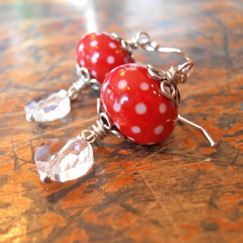 Here's how are stall was looking (before we were open to the public, I hasten to add - Helen doesn't usually look so grumpy!) You can see some bags that my sister-in-law made hanging on the sides, and some GORGEOUS silk and mohair cuffs that my Mum knitted. And yes, they are beaded too :-). So, what do you all think of my display? I can't really afford to be buying any fancy accessories and props - I bought the three picture frames and Helen spray painted them for me and we fitted in the lace together, and the rocks and wood are salvaged from the shores of Whitby. I was pretty pleased with how it looked, I think it was the best so far, and the book you can see on the LH side was a portfolio with a wee statement about me, my jewellery and the materials I use. I'll maybe publish that here at some point so you guys can 'critique' it.